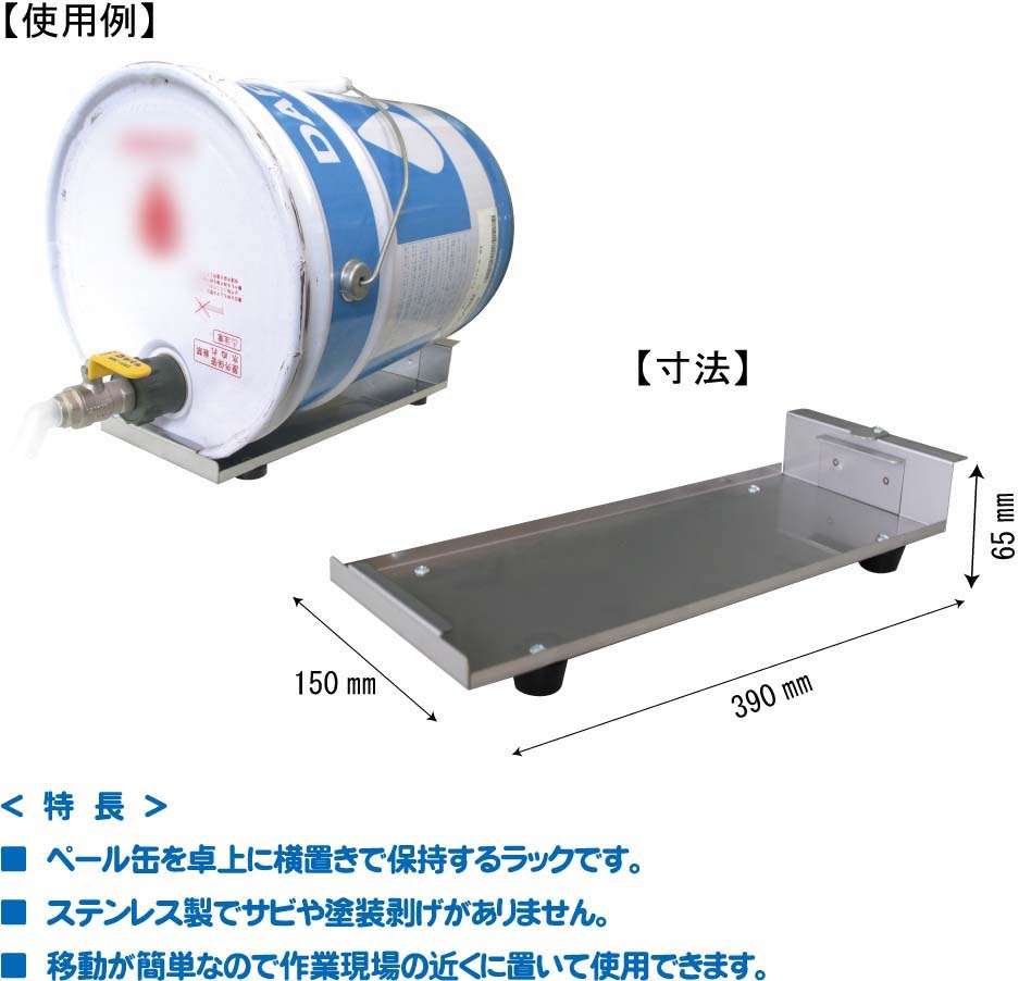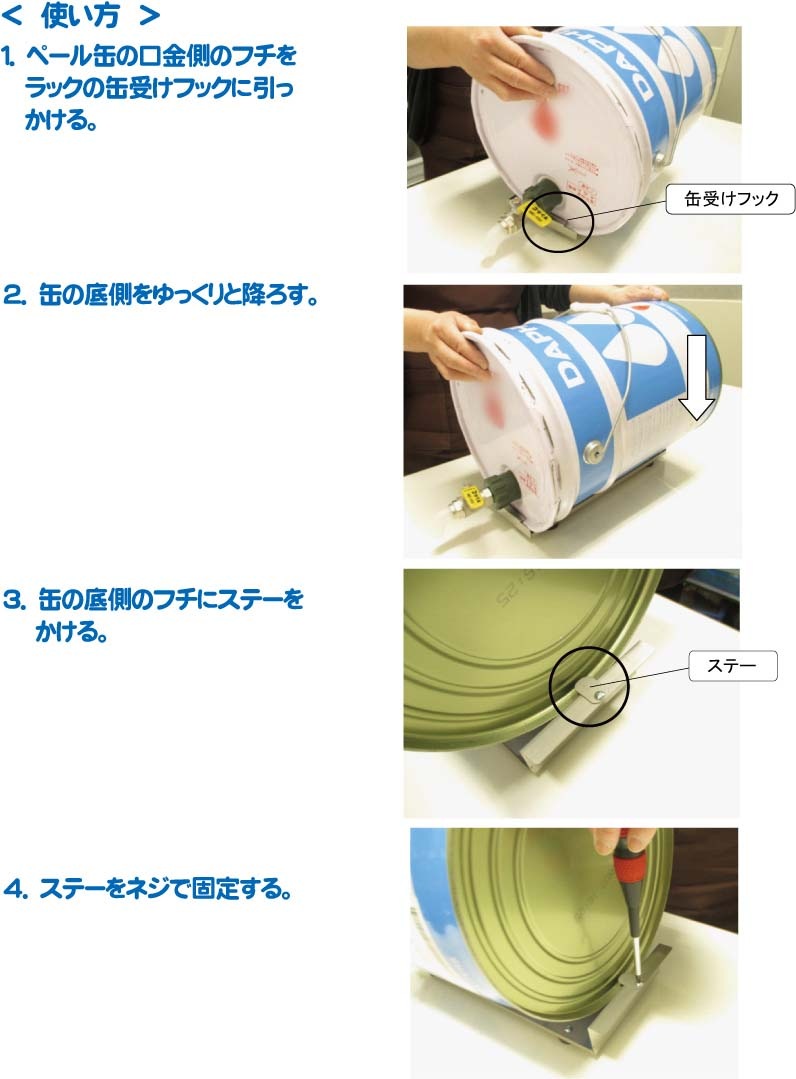 ・ペール缶を卓上に横置きで保持するラックです。