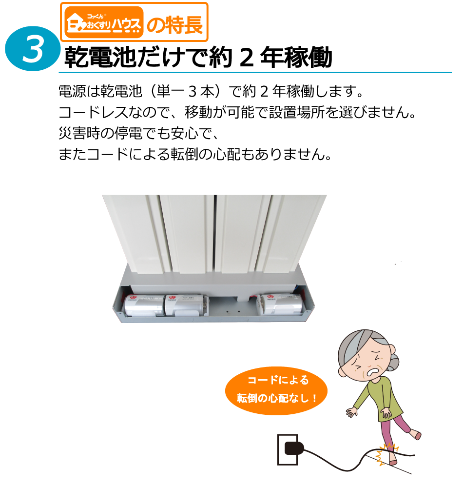 3.乾電池で約2年稼働 災害時の停電でも安心