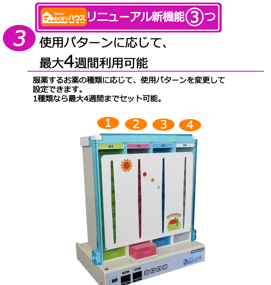 さらに、今までの服薬支援機「コッくんお薬よ~」から大幅リニューアル。