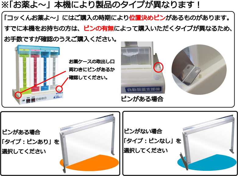 「コッくんお薬よ~」本機をすでにご購入済みの方は、お確かめのうえ、合致するタイプをご注文の画面よりお選びください。